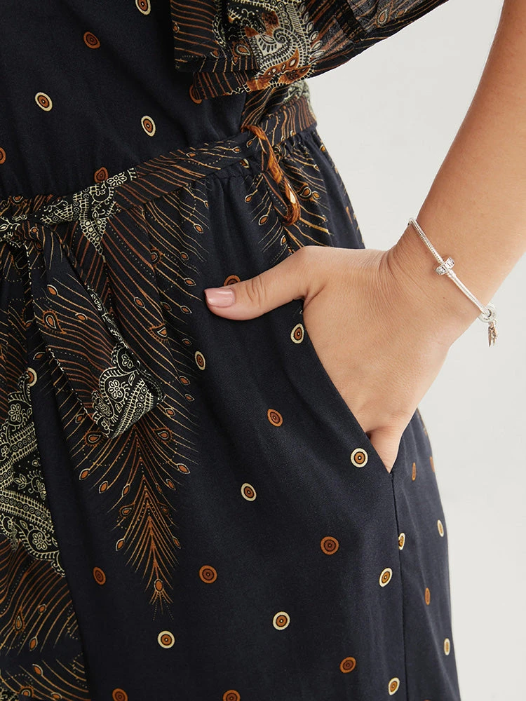 Details: Ruffles,Pocket,Elastic Waist,Belted