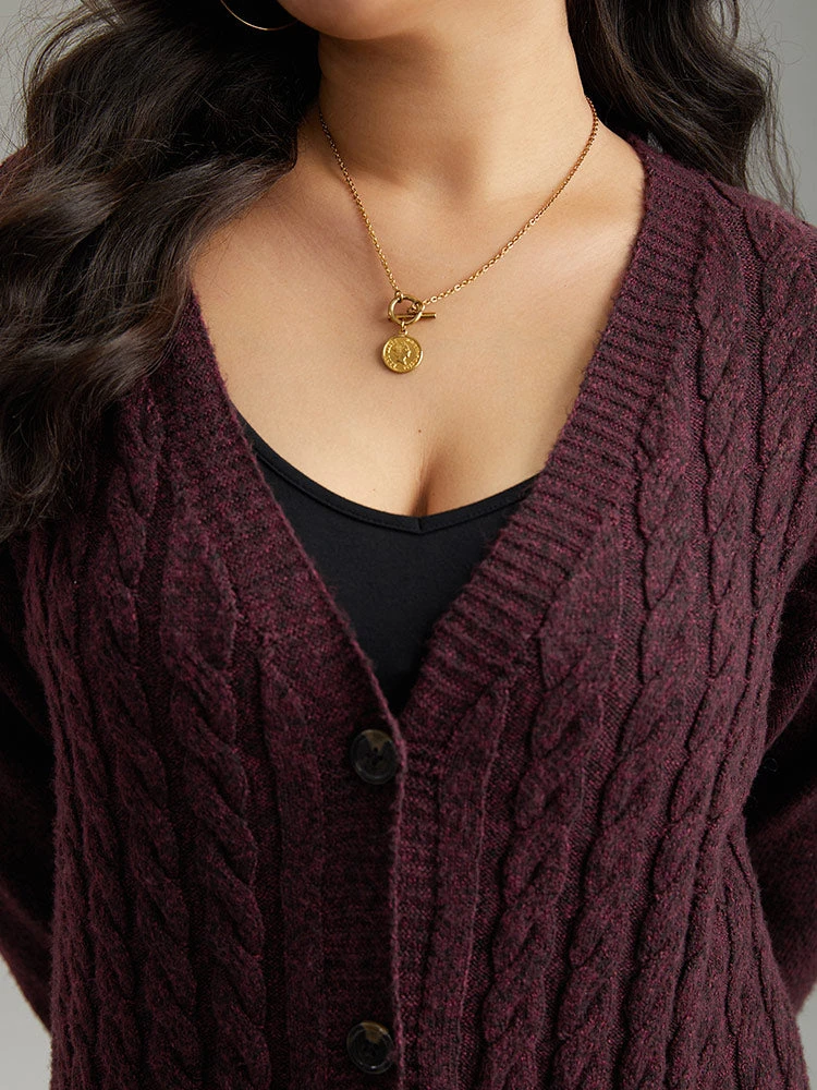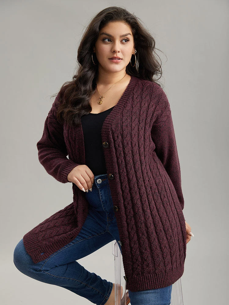 Details: Plain,Elastic cuffs,Texture,Button,Cable Knit