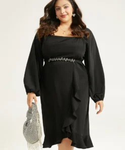 Anti-Wrinkle Square Neck Ruffle Trim Wrap Hem Dress