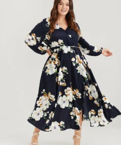 Bloom Dress – Floral Lantern Sleeve Pocket Split Surplice Neck Flutter Maxi Dress