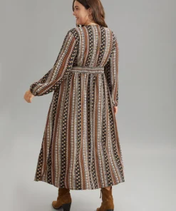 Bandana Tassels Lantern Sleeve Ruffle Pocket Keyhole Neck Dress