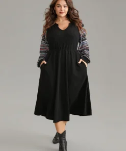 Bandana Patchwork Elastic Waist Notched Dress