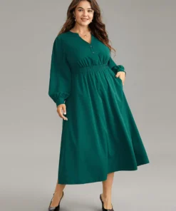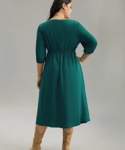 Anti-Wrinkle Shirred Gathered Notched Dress