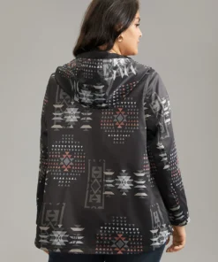 Geo Graphic Hooded Pocket Zipper Fly Coat