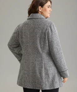 Duffle Button Zipper Pocket Tweed Coat