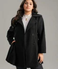 Fuzzy Trim Drawstring Button Through Coat