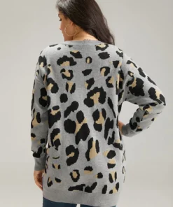 Anti-Pilling Leopard Elastic Cuffs Pullover