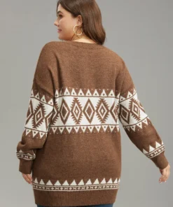 Anti-Pilling Elk Print Drop Shoulder Pullover
