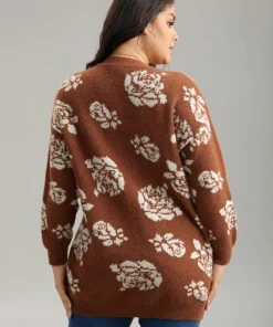 Anti-Pilling Floral Print Drop Shoulder Cardigan