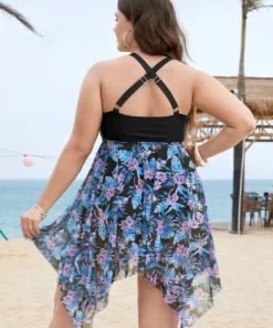 Floral Cut Out Cathered Hanky Hem Tankini Top