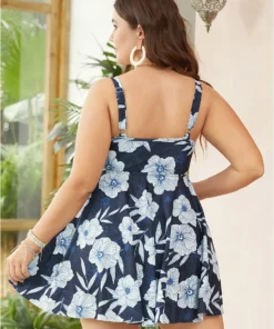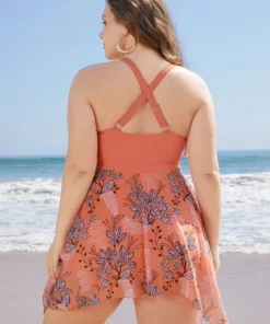 Floral Contrast Crossover Front Ruffles Adjustable Straps Swim Dress