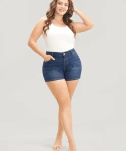 Skinny Very Stretchy Dark Wash Single Breasted Denim Shorts