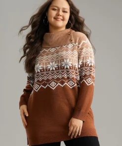 Snowflake Print Button Detail Split Side Pullover