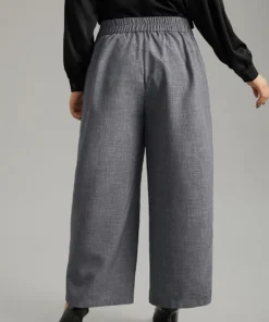 Textured Button Up Flap Detail Wide Leg Pants
