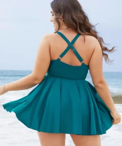 Surplice Neck Ruffle Tiered Crossover Adjustable Straps Swim Dress