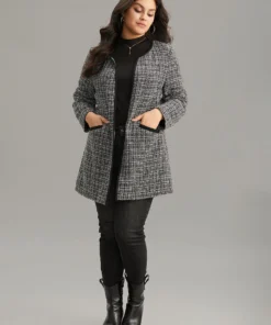 Tweed Lapel Collar Button Up Pocket Coat