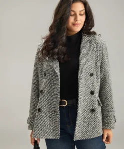 Tweed Lapel Collar Double Breasted Plicated Detail Coat