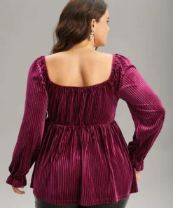Velvet Frill Trim Shirred Square Neck Blouse