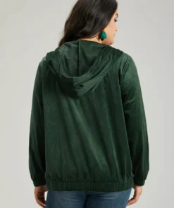Velvet Zipper Pocket Drawstring Hooded Jacket