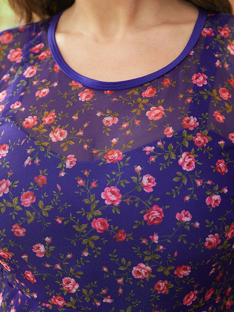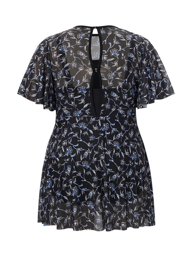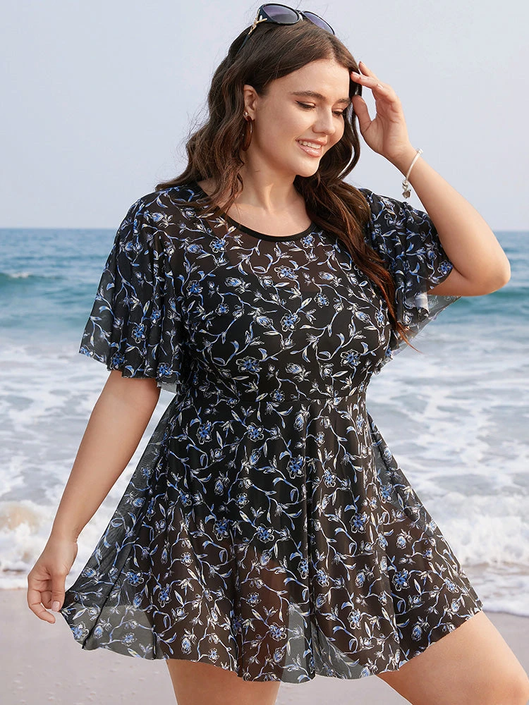 Details: Printed,Tummy control,A-line,Mesh,Adjustable Straps