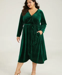 Velvet Rib Knit Wrap Hem Pocket Belted Dress