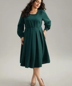 Static-Free Plain Pleated Pocket Dress