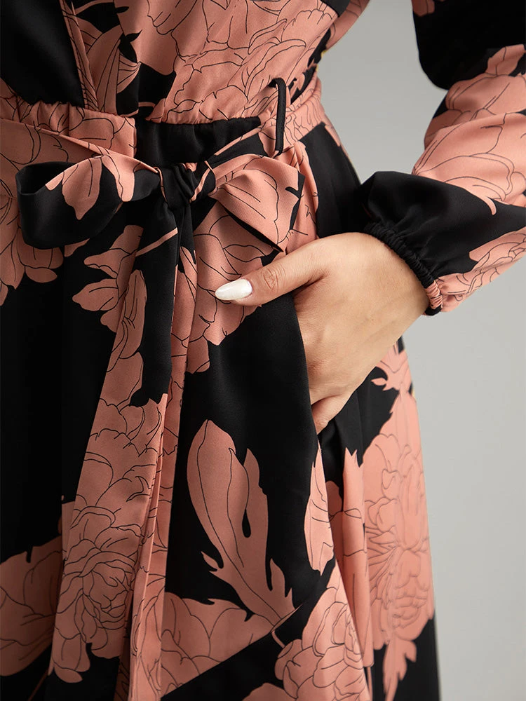 Details: Pocket,Button,Elastic Waist,Printed,Belted,Elastic cuffs,Arc Hem,Wrap