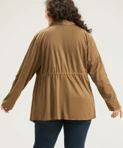 Anti-Wrinkle Plain Pocket Drawstring Button Up Suit Collar Coat