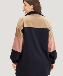 Colorblock Contrast Patchwork Pocket Button Through Jacket