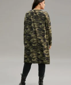 Camo Print Drape Open Front Pocket Coat