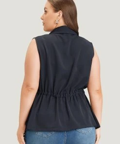 Anti-Wrinkle Plain Pocket Drawstring Lapel Collar Vest