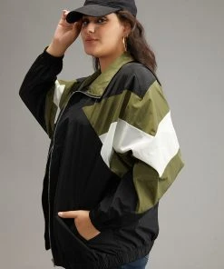 Colorblock Patchwork Pocket Zipper Windbreaker