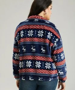 Christmas Contrast Zipper Elastic Cuffs Jacket