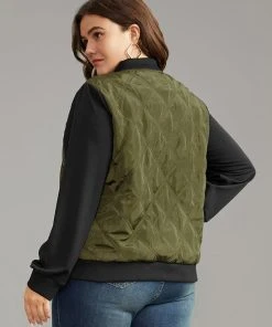 Contrast Patchwork Quilted Zipper Bomber Jacket