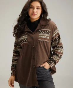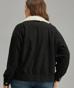 Corduroy Plaid Patchwork Pocket Jacket