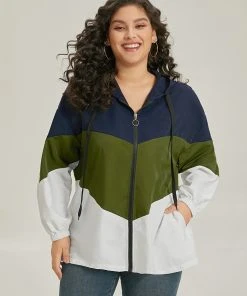 Colorblock Contrast Drawstring Hooded Zipper Jacket