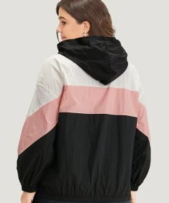 Colorblock Contrast Zipper Pocket Hooded Jacket