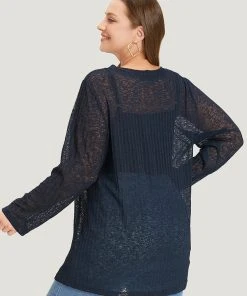 Solid Rib Knit Button Through Mesh Kimono