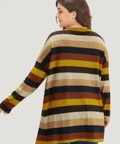 Striped Contrast Pocket Open Front Coat