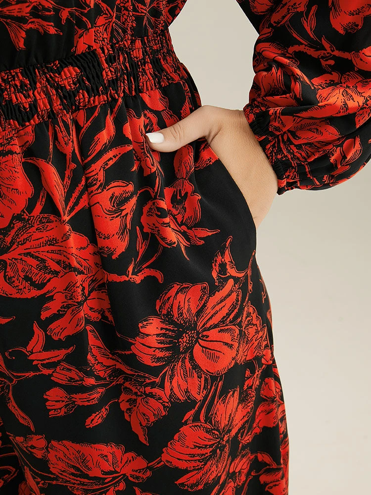 Details: Shirred,Pocket,Elastic Waist,Printed,Elastic cuffs,Zipper