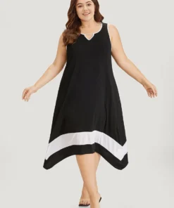 Details: A-line,Plain,Contrast,Cut-Out,Asymmetrical,Pocket
