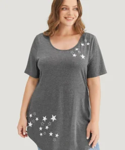 Star Print Split Arc Hem T-shirt