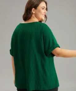 Plain Texture V Neck Roll Dolman Sleeve T-shirt